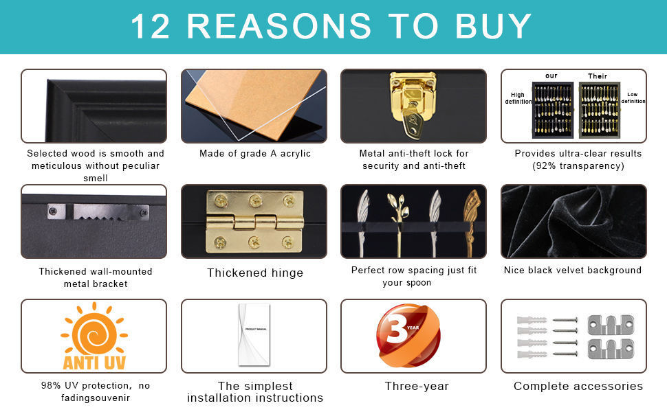 Showcase your collection with this elegant 36 Tea Spoon Souvenir Spoon Display Case Holder. Crafted with a sleek black finish and a lockable UV-protection glass door, this cabinet keeps your treasured spoons safe, dust-free, and beautifully displayed.