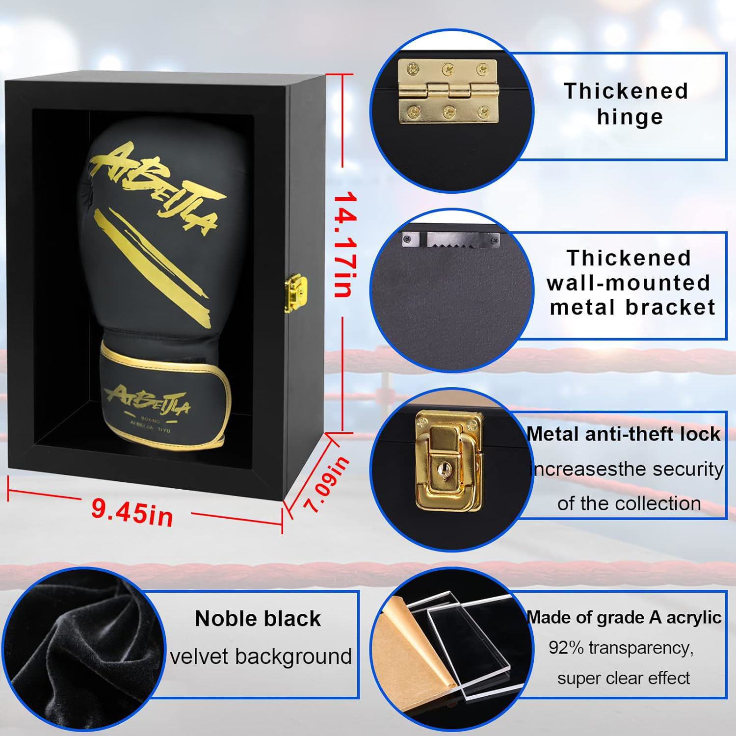 Wall Mountable & Lockable – Equipped with a gold-plated anti-theft lock and reinforced wall-mount bracket for secure, stable display. Effectively prevents dust, damage, or tampering from curious fingers, children, and pets.